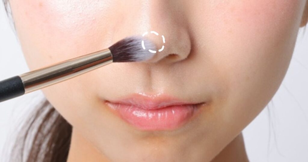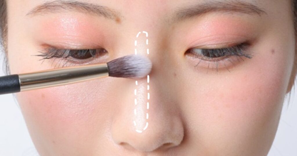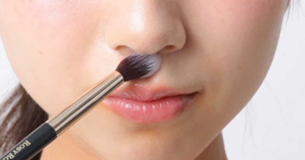 陰影はやりすぎNG。鼻筋はスッとなでるように、鼻先は丸く入れるとかわいらしい印象に。