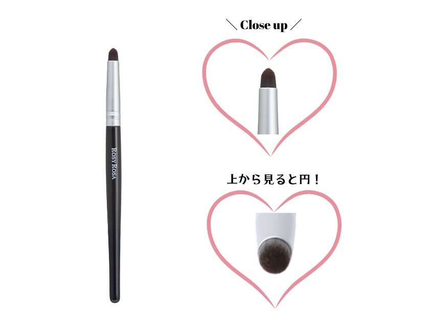 目ヂカラをUPさせたり、目を大きく見せたいときは小さめメイクブラシで繊細&ピンポイントに影を足すのが正解。まつ毛のキワや三角ゾーンを攻めれる小さく&薄めな穂先がGood!