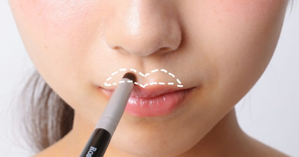 くちびる上のハイライトはくちびるぷっくり効果が狙える♡ 毛先で山をなぞるようにすると◎!