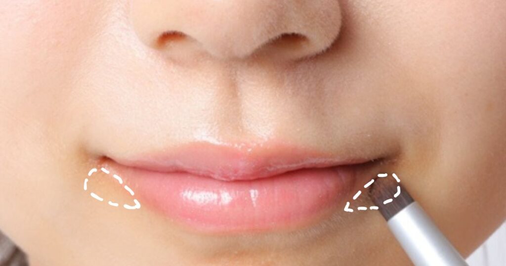 下くちびる横、口角下を少しだけ明るくすると、口角がきゅっと上がって見えてハッピー感が高まる♡
