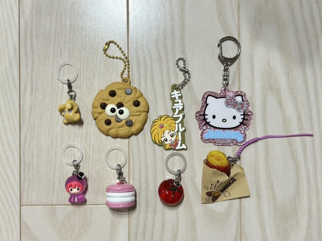 ユア「ガチャガチャはめっちゃやります!お気に入りの目じるしチャームは、プリパラの北条そふぃ、魔法使いプリキュアのモフルン(茶色のくまさん)、トマト、トゥンカロンです!僕が見たかった青空メンバーの八木仁愛(やぎとあ)ちゃんと回しました!目のついてるクッキーのキーホルダーは、裏側が鏡になっています!」
