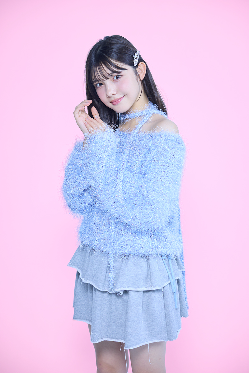 その儚さに思わず守りたくなっちゃう♡そんな“甘ふわニット”は、この季節のモテコーデに欠かせない鉄板アイテム。淡いブルーのニットは、チョーカーつきデザインなのも上級おしゃれ。