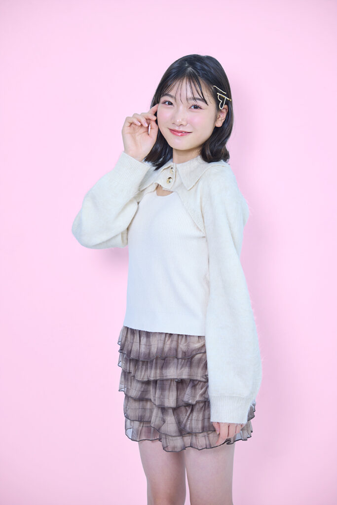 ハルハ☆ジップニット¥9900/SPIRALGIRL スカート¥4290/ANAP カチューシャ¥550/WEGO