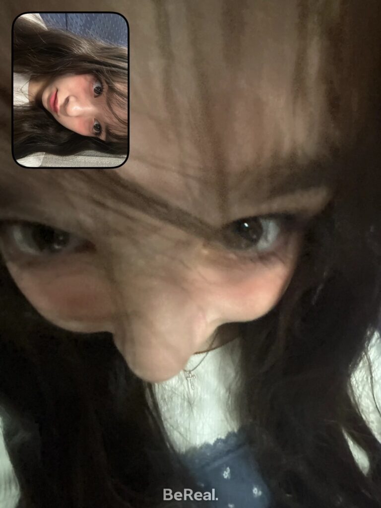 「仕事が終わって、みんなお疲れ様ー!!の意味を込めたBeRealです😋この日は巻き髪がふわふわで可愛かったから顔写してみた😍」by ヒナノ