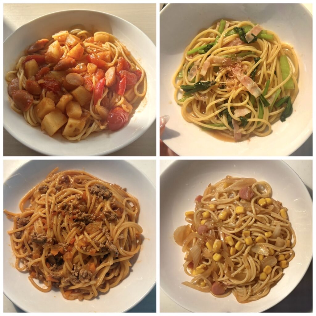1番好きなのは左下のチーズミートパスタ!全然チーズ見えてないけど