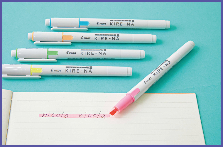 「キチントガイド」のおかげで教科書の曲面にもまっすぐ線が引ける!ノートも教科書も汚さない新しい蛍光ペン。