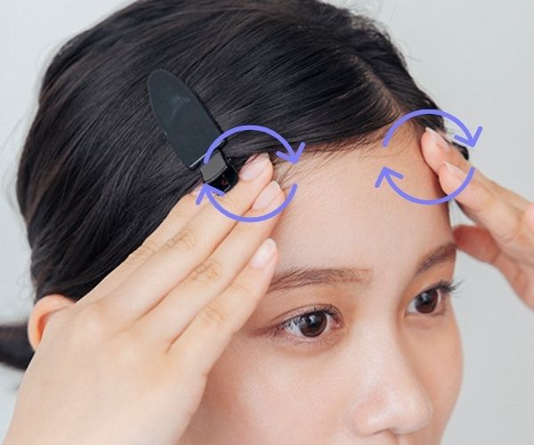 ニキビができやすく皮脂が多い、生えぎわも同様に円を描くように。