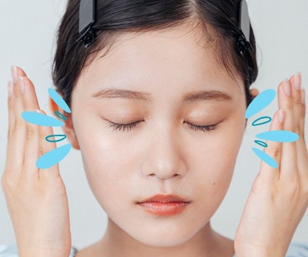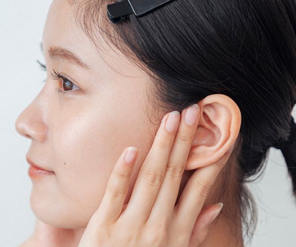 皮脂がたまりやすい耳の裏も指でやさしく挟みながらなじませて。
