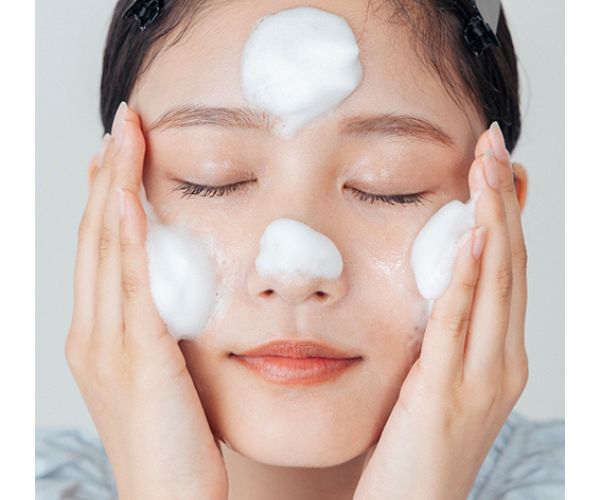 泡立てた洗顔フォームでやさしく洗って、肌に残った汚れをオフ!