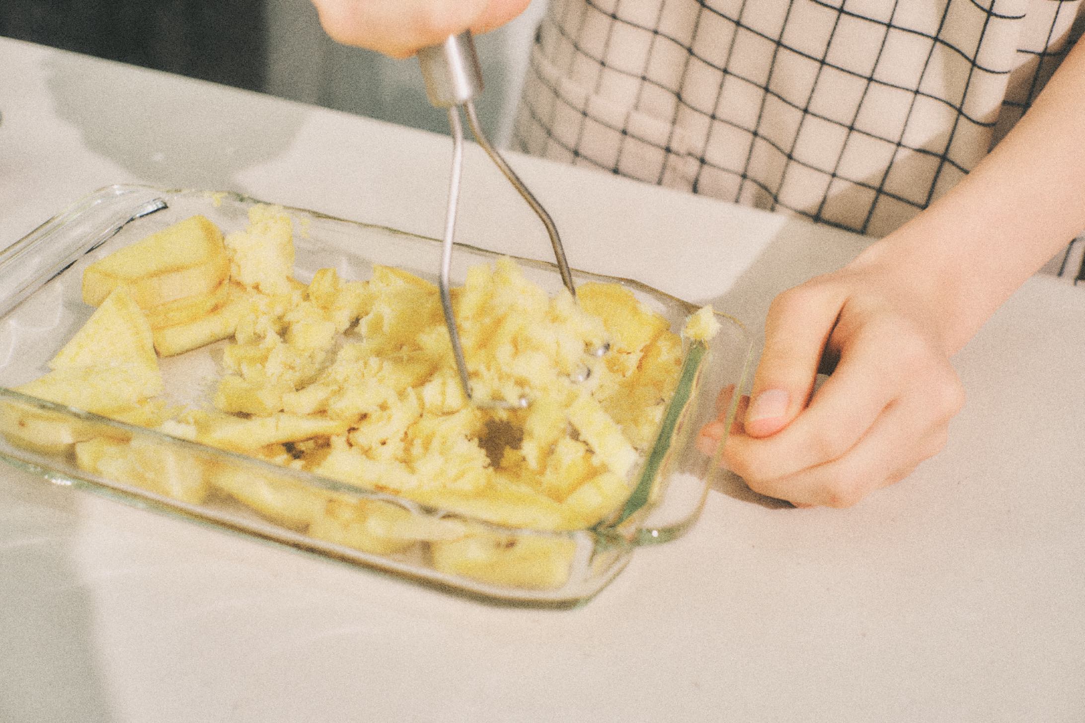 ②さつまいもをマッシャーで潰し、バターを入れ混ぜる★