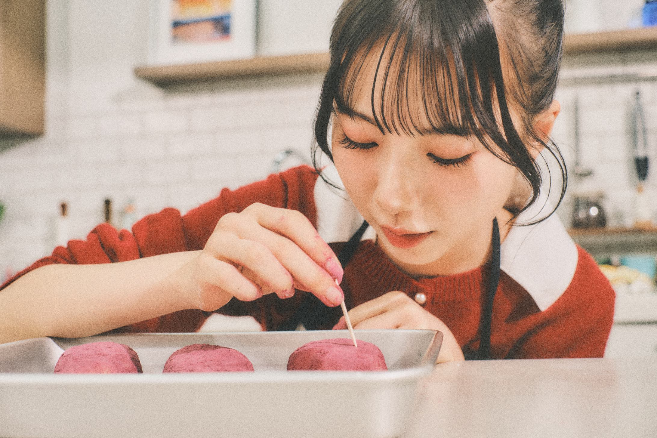 「はい!作っていました❤︎元々お菓子作りが好きで、実家から道具を送ってきてもらったタイミングだったので作ろう!と思って。メンバーの秋田莉杏にプレゼントしました❤︎バナナケーキを作った時に、食べたいと言ってくれていて、約束していたので!実はお母さんがパティシエなんです。幼稚園生くらいの頃から、お誕生日ケーキとかを一緒に作っていたので、自然とお菓子作りが好きになりました」