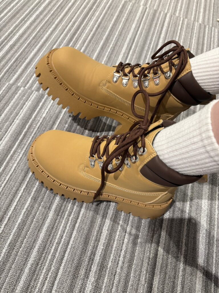 ルナは<WEGO>でカジュアル厚底ブーツをゲット☆足首のワンポイントと紐のカラーが統一感あってかわいい!リブ入りの白ソックスと合わせて脚長スタイルアップ効果を狙お!