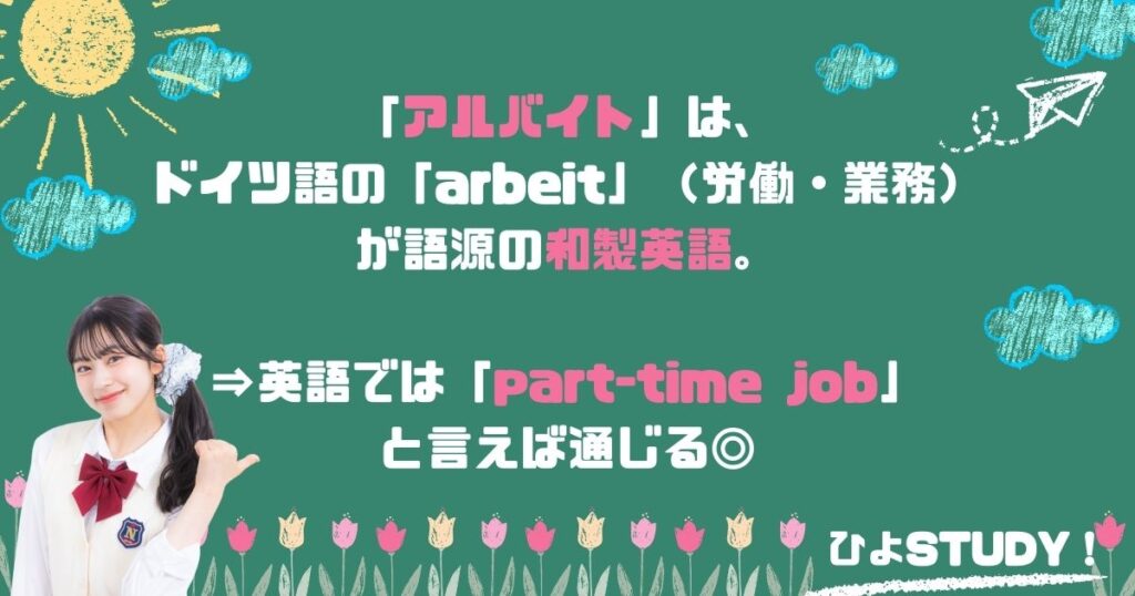 「アルバイト」は、ドイツ語の「arbeit」(労働・業務)が語源の和製英語。英語圏では「アルバイト」と言っても通じない✖