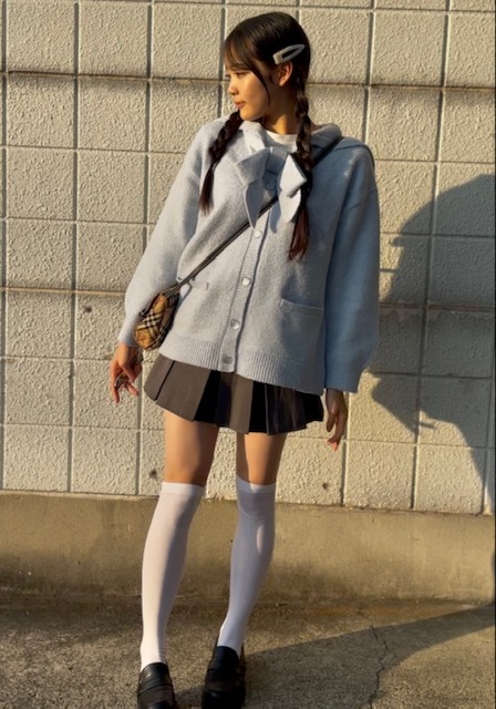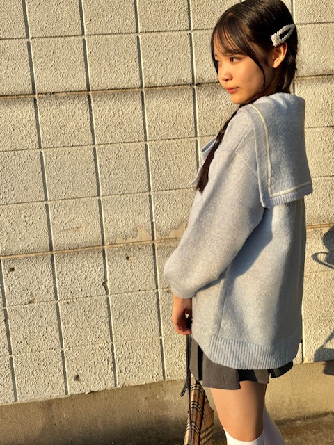 このカーディガン、セーラ襟になってて後ろ姿まで可愛いの😍