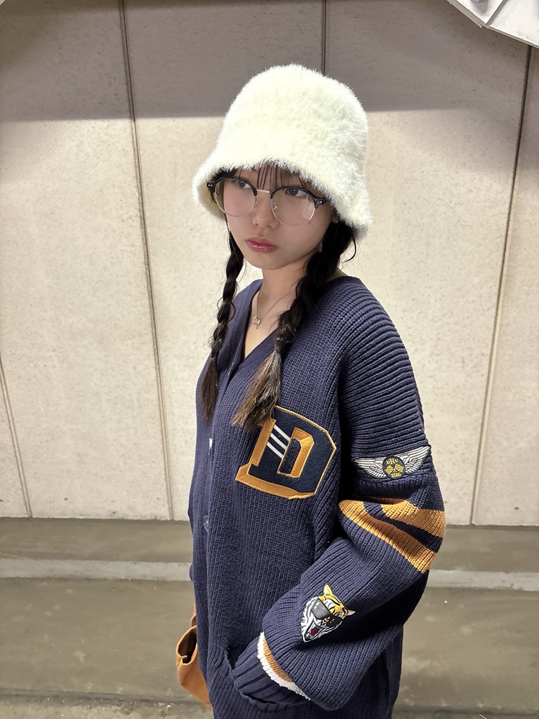 丸みのあるハーフリムのメガネがふわふわ素材のバケハとの相性抜群!下半分のフレームがないデザインだから、主張しすぎず、自然に垢抜けて見えるのが魅力♡ゆるっとかわいいガーリースタイルに抜け感が加わって、甘さと大人っぽさのバランスがちょうど良い◎