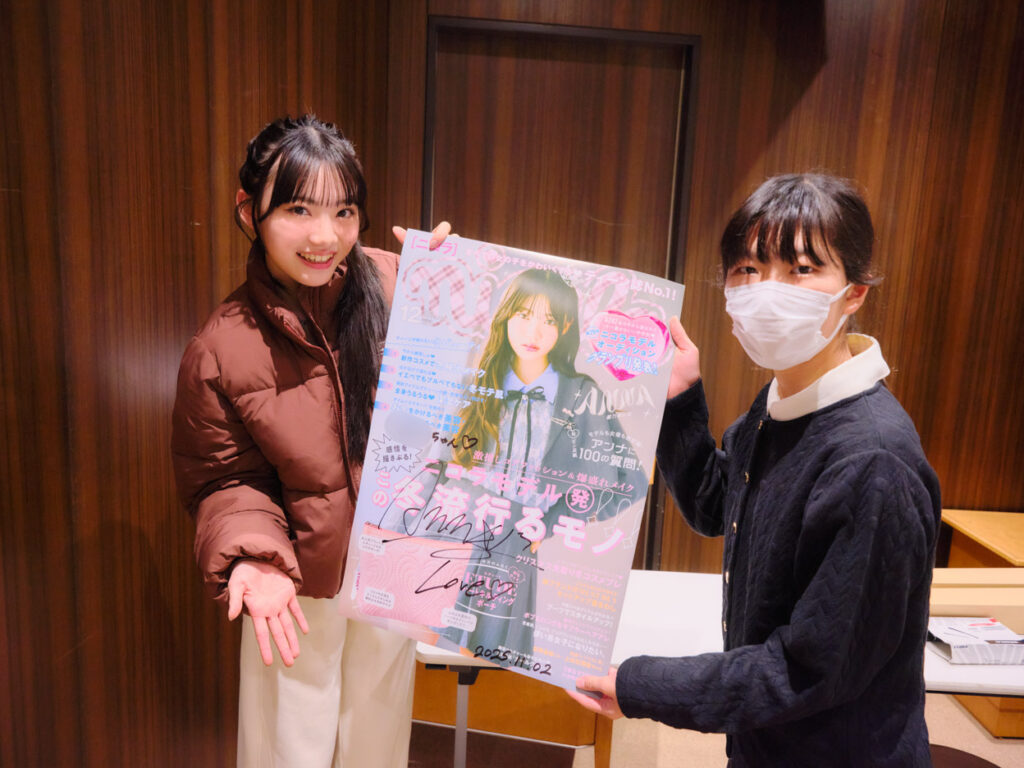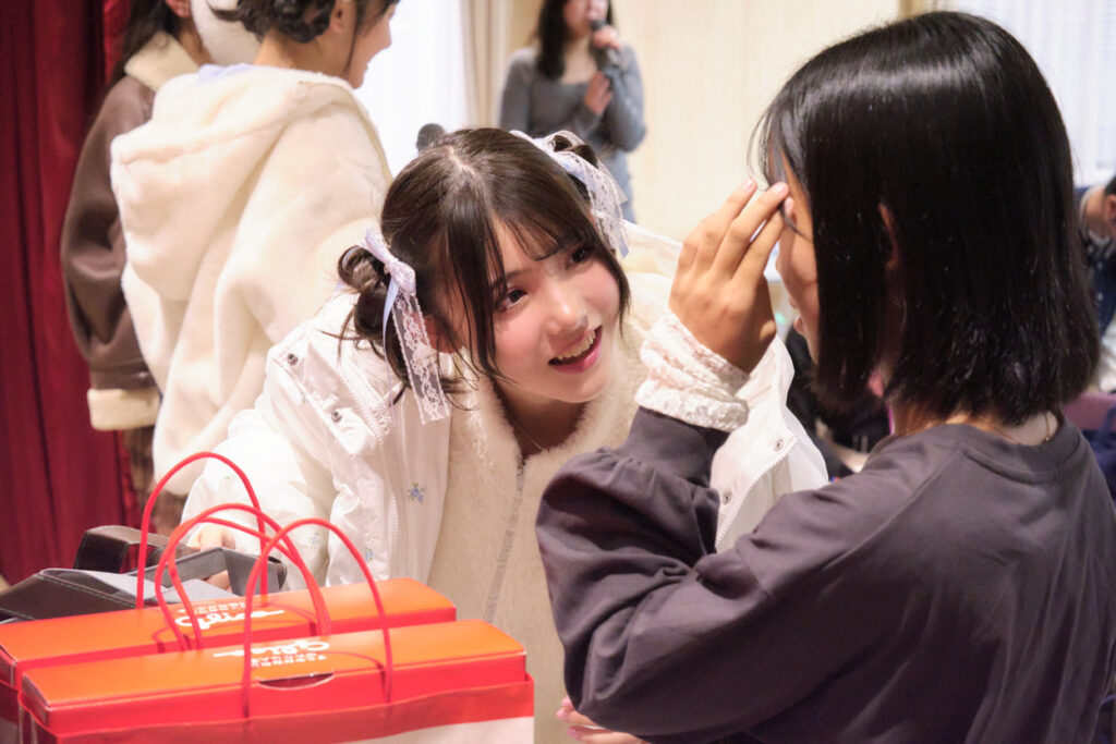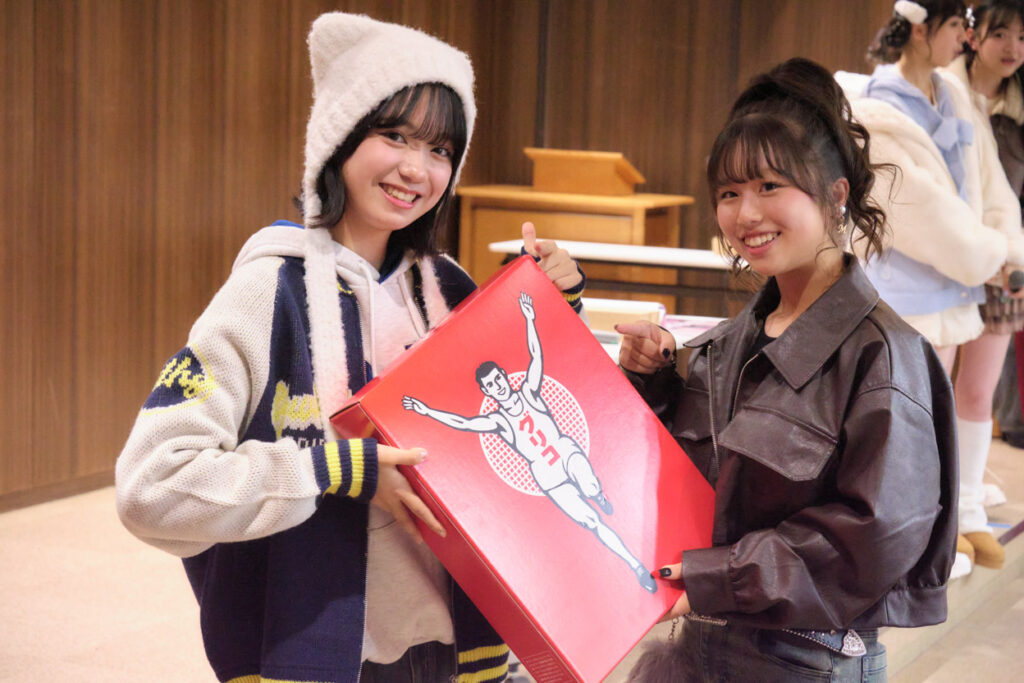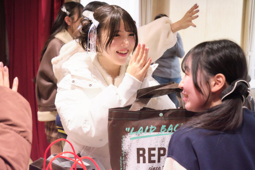 今回も、スペシャルな景品をかけたじゃんけん大会を開催。ソノマはレピピアルマリオのトップス+ソックス、ハルハはニコ学リボン+お守り、ワカナはグリコのお菓子5000円分相当が入ったお楽しみBOX、アンナは12月号の表紙ポスター、リコとリリはリコリリのシングルのポスターをかけてレッツじゃんけん!