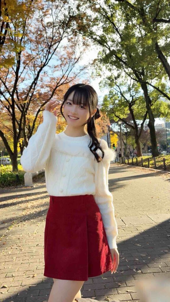 胸もとにデザインされたファーが上品な華やかさをトッピング。大胆なファーづかいが苦手な子は、一部分にデザインされたものから挑戦するのがおすすめだよ!さりげなく編まれたハート型がよりコーデを甘口に。パッと目を引く赤のミニスカでホリデーな街並みに溶け込んで♪