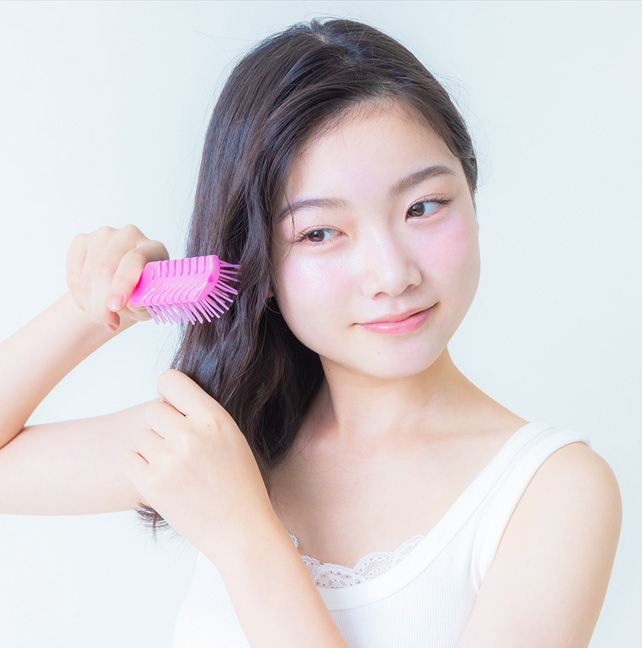 アウトバストリートメントが髪全体に行き渡るように、粗めのブラシでとかすのが美ワザ!