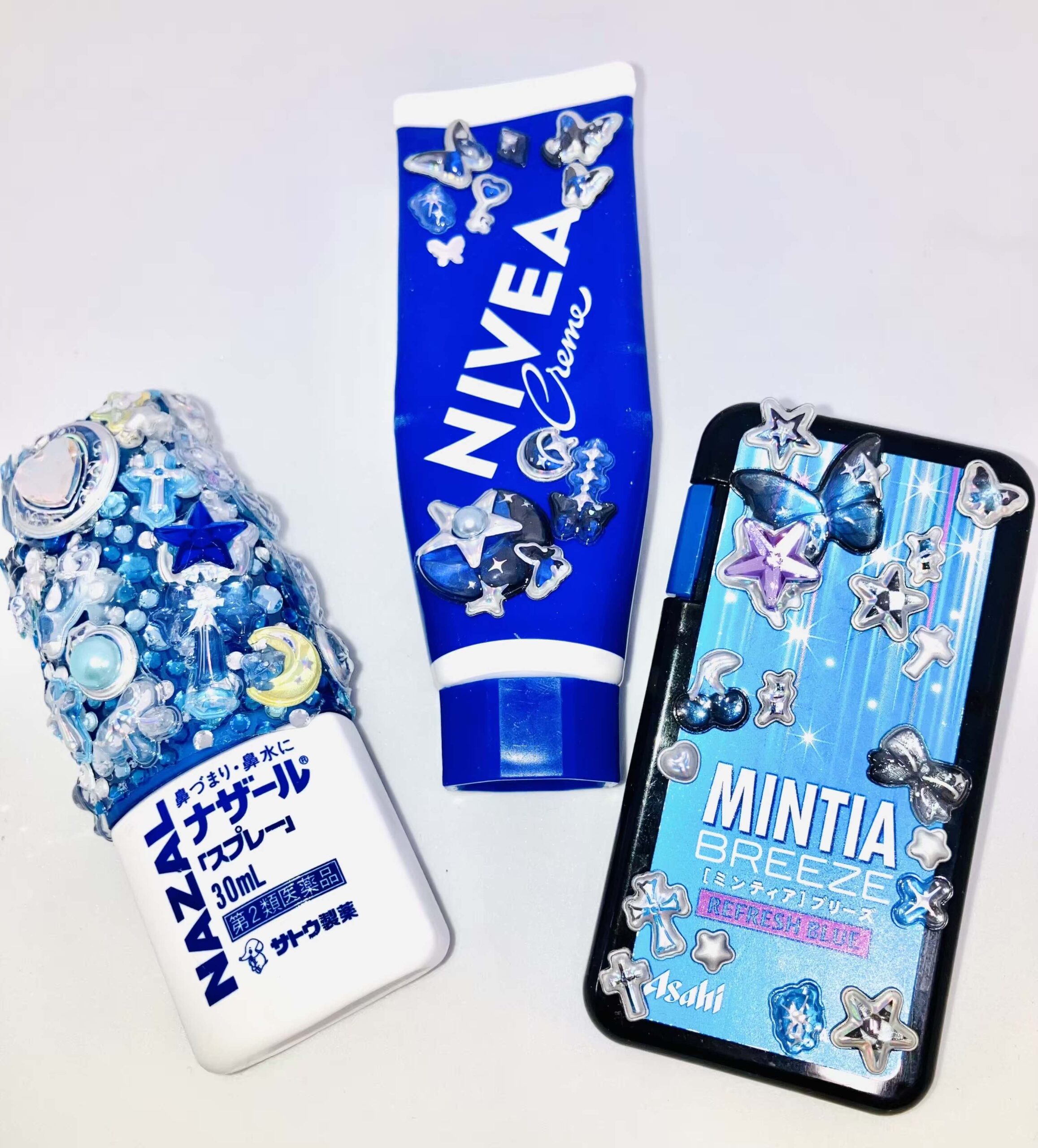 パケのブラックとブルーのインパクトに負けないように、大きい蝶とシルバーのシールで主張してみました!