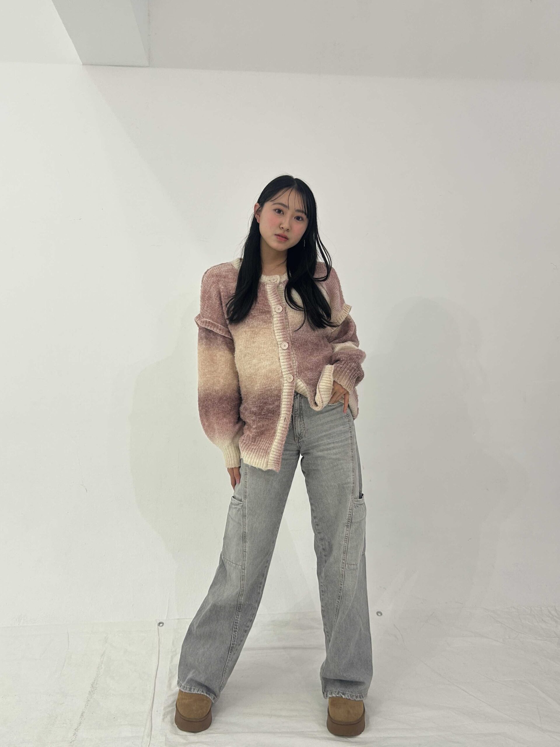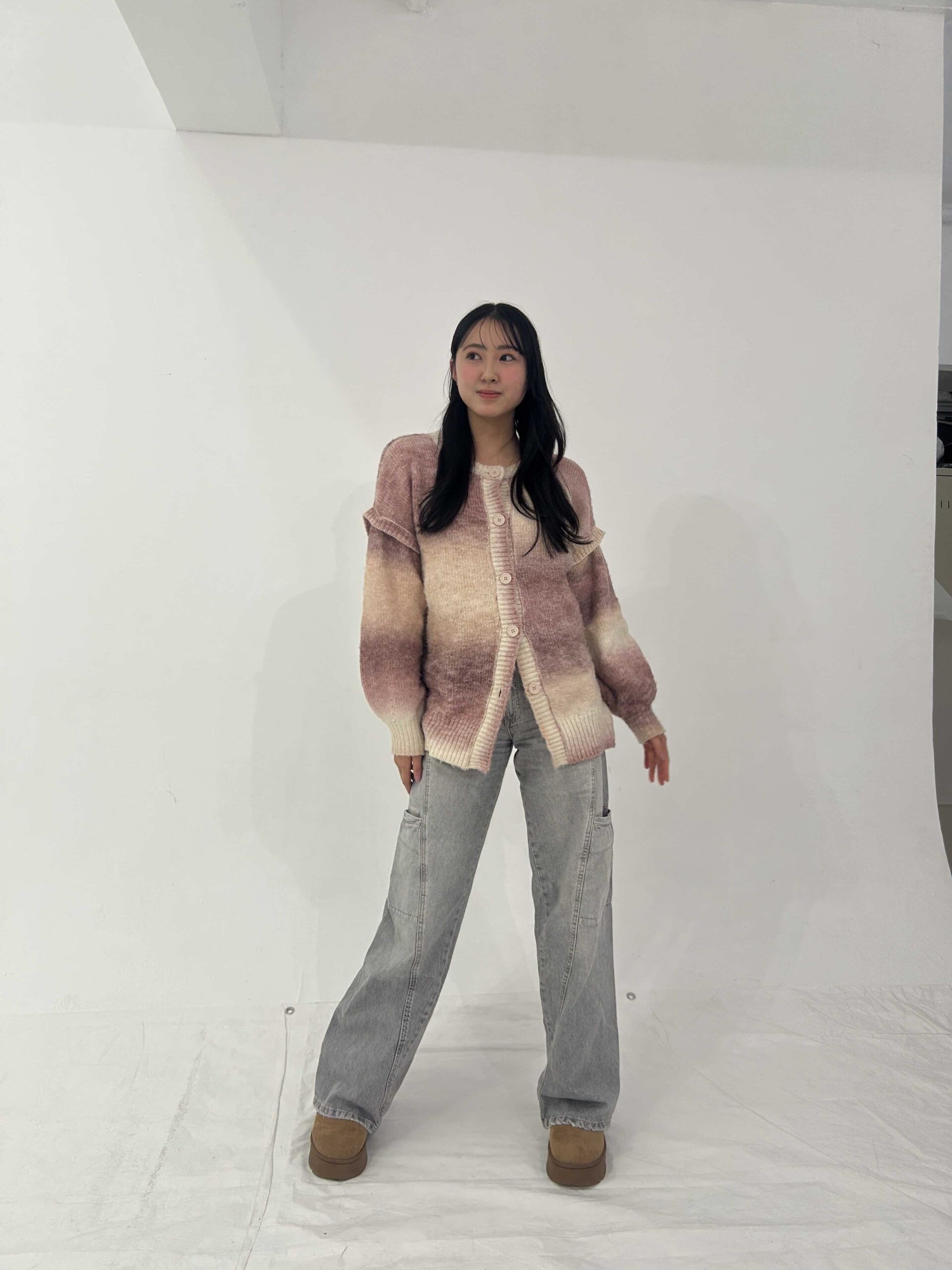 「グラデーションが可愛いゆるっとカーデは、今年のヘビロテアイテム!!ムートンブーツなどのトレンドアイテムはGRLでお得にゲットするよ!色浅めのデニムで海外ガール風に仕上げたんだ★」