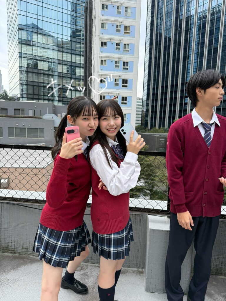 撮影待ちの間は、スマホ部女子部員の中で、ぶりっ子選手権が開催。ツインテールをわしづかみして、キャピりだしたリコ。スマホ部メンバーには大受けだったけど、やり直したーいとかわいいverの写真も撮らせてくれたよw それに影響されたクルミもふざけまくり。撮影中も仲良しなスマホ部メンバーなのでした。