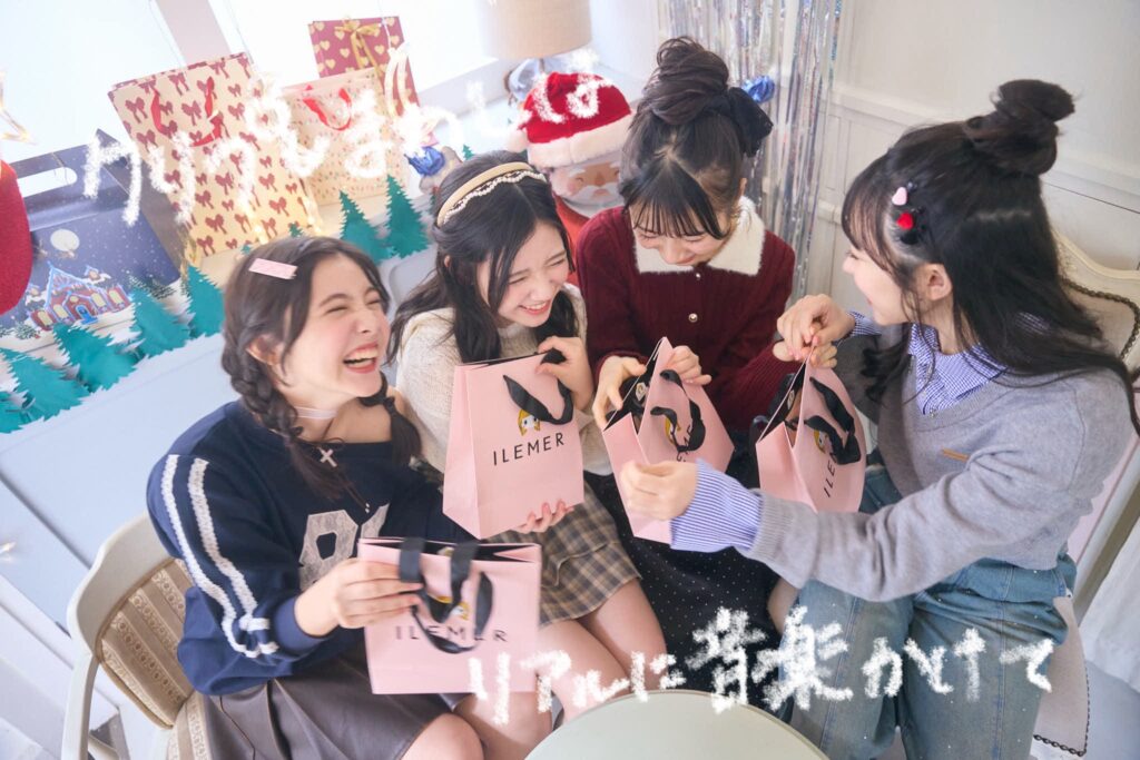 スタジオアタオの撮影では、実際に⾳楽をかけながらプレゼント交換会を再現! アットホームなメンバーでの撮影で、おしゃべりが⽌まらずテンション⾼めな1⽇になりました。誌⾯にも楽しい雰囲気が溢れているからチェックしてね!憧れニコ㋲企画のシャノンのカットは、カメラマンさんが3時間かけて作った超ガーリーセットを使⽤♡ 「こんなに作り込んで撮るの久しぶり〜♡」とシャノンもとても嬉しそうだったよ!