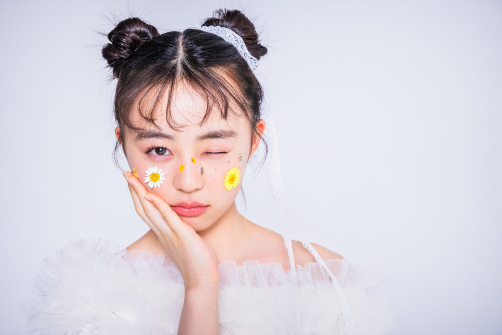 「1時間インタビューは、ずっと出てみたかった企画だったので、絶対に納得のいく誌面にしたいと思い、前日から『盛れますように…!』と願っていました(笑)。その効果が出たのか、とても可愛く撮れたと思います!顔にお花をつけたスタイリングもお気に入りで、すごく好きなショットです!」