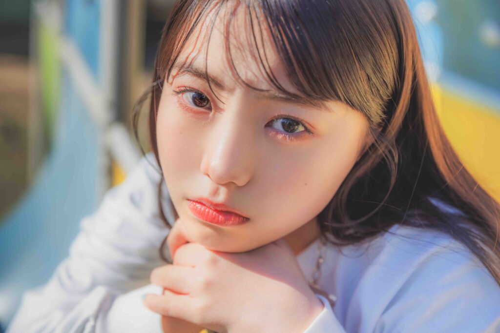 「1時間インタビューはいつものニコラの撮影とは少し違って、洋服やメイクなどをみせるカットではなく自分を魅せる撮影の仕方だったので、いつもとは違った楽しさがあって自由に撮影することができました。コーデもメイクもすっごく可愛くて、太陽も味方になってくれて、すっごく可愛いカットが撮影できました。1時間インタビューのお写真は全部好きだけど、特に目力が強い顔だったのでこのお写真にしました。太陽の光の当たり方も好きだから!!」