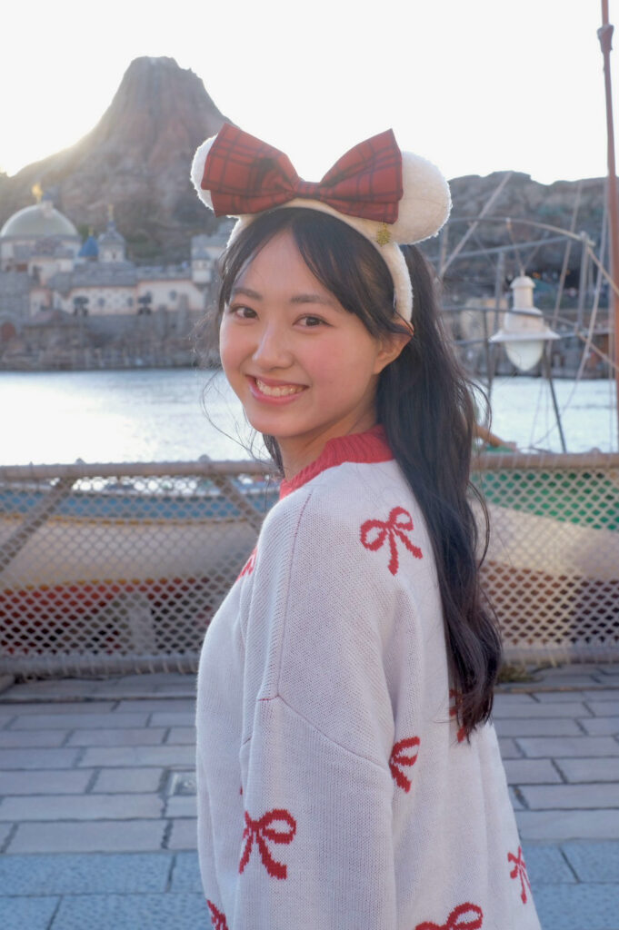「まさに、ディズニーマジックが起きてこの日はめちゃ写真が盛れました!それに、クリスマスディズニー限定のカチューシャとニットのおかげでもっと盛れた♡」
