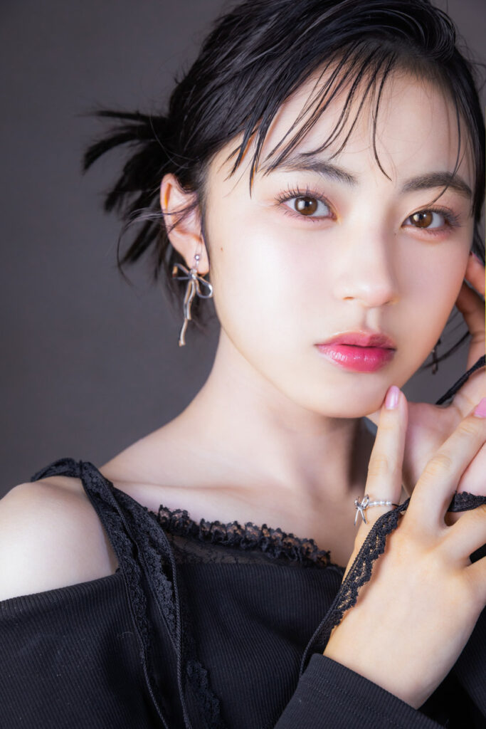 「黒で大人っぽく撮っていただいて、新鮮で印象に残っています!家族が褒めてくれたのでこのカットにしました♡頑張って自分でメイクしたので、誌面で見たときはすっごく嬉しかったです♡」