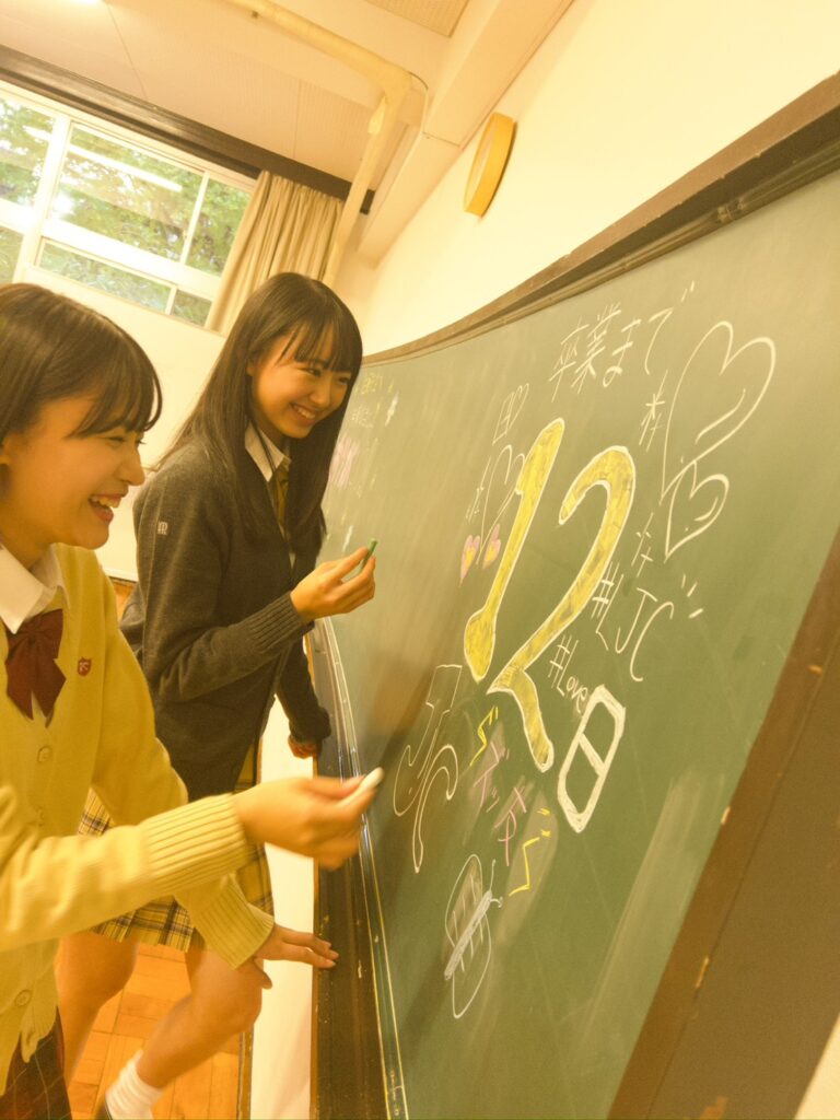 「ユアのデジカメで撮ってもらった写真!笑いながら黒板に絵を描いてるのがエモくて大好き!青春感じる♡♡