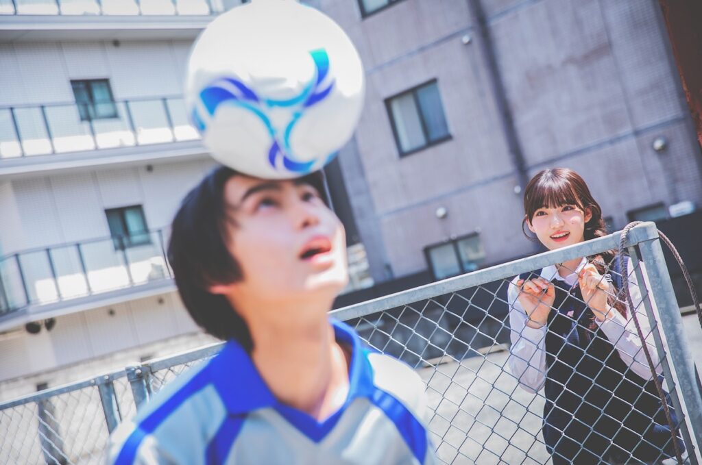 野球観戦×胸キュン、難しくないか……!?と撮影をしていて、その場でふと思いついた「カチューシャつけてあげる」を流れでやってもらった1枚。案を出した編集が言うなって感じですが、無理あるかな〜〜と思ったのに、リョウスケがやるとちゃんと胸キュンになりました。メン㋲ってすごい!と思ったカットです