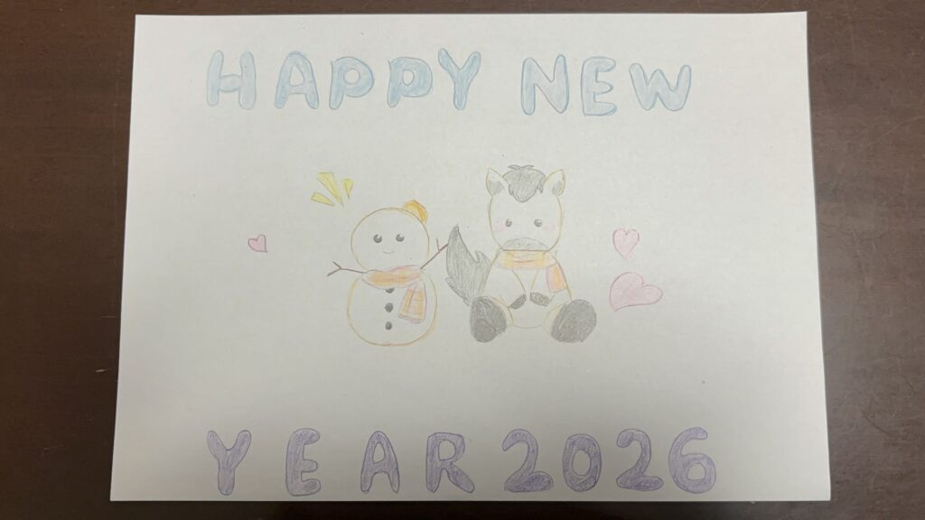 キリッとしたお午さん!明朝体風の「HAPPY NEW YEAR」もハイセンス!