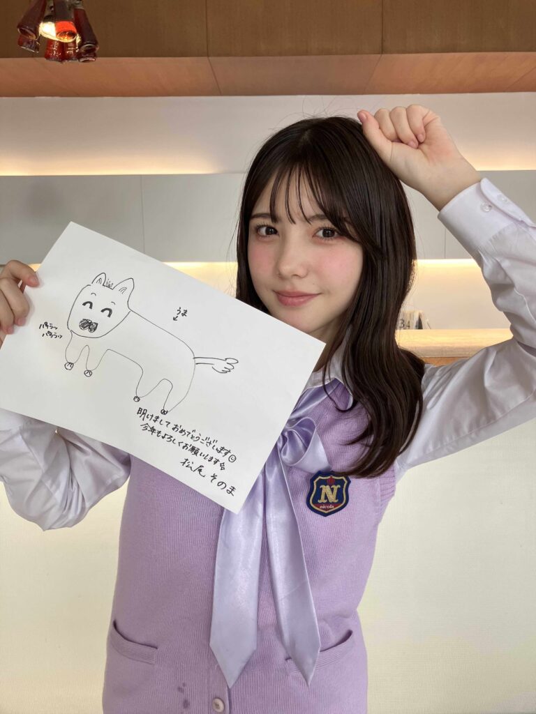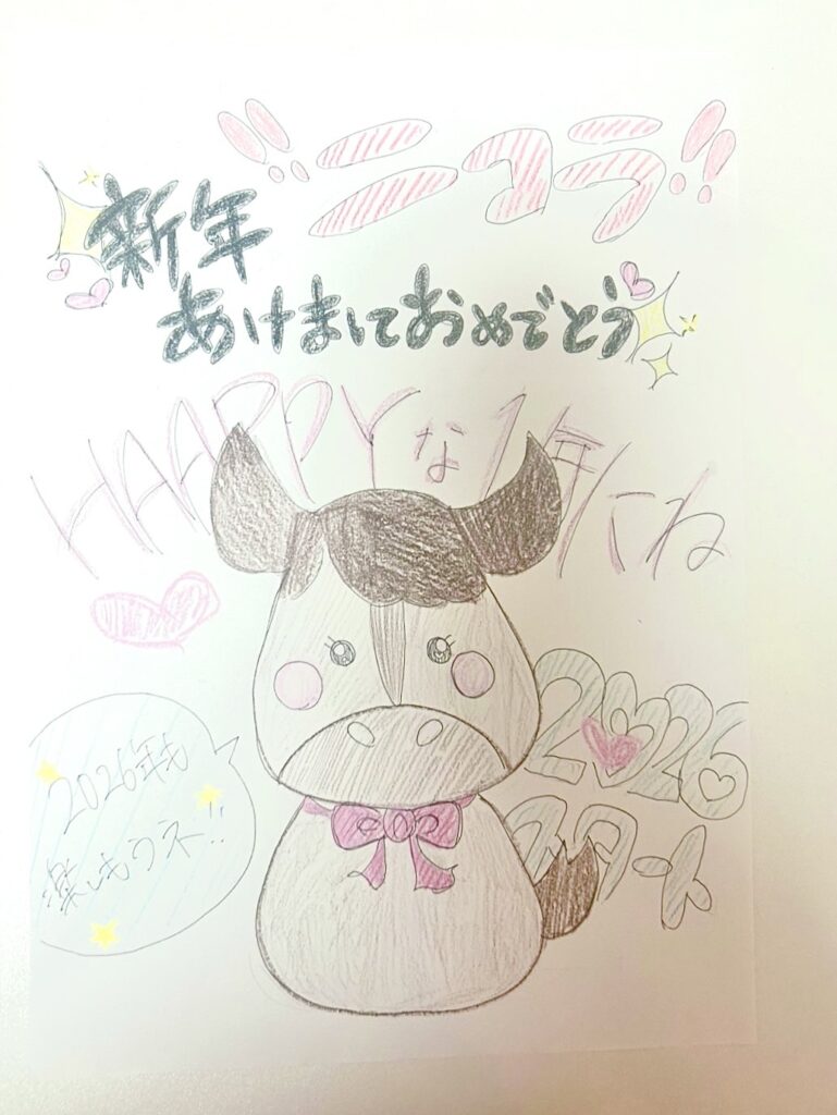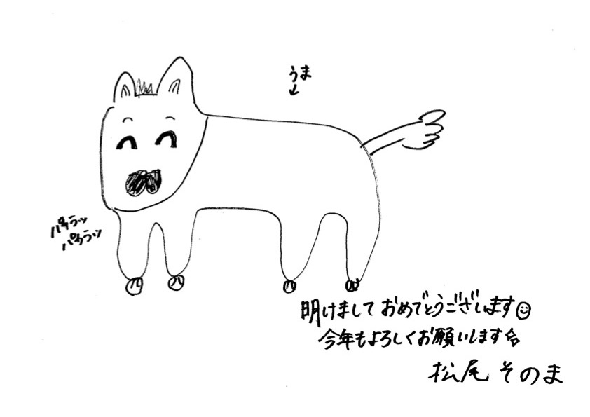 う、午ーー!!少々午ポーズでごまかした画伯の誕生!ソノマの笑った顔に似てる♡