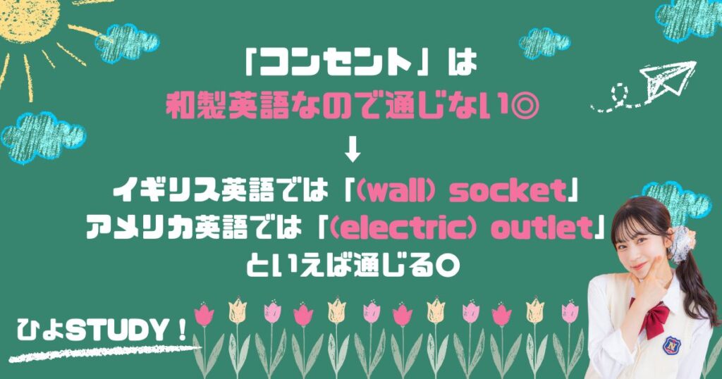 ー「コンセント」は和製英語なので通じない✖