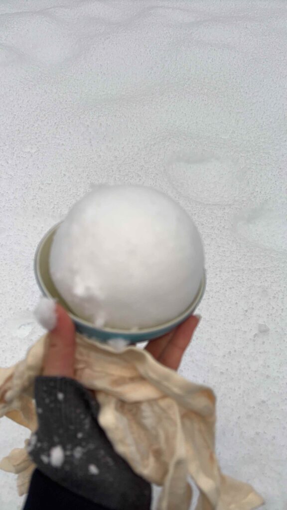 冬休みは石川に帰ったんだけど、30cmくらい積もった時に、お茶碗で丸めて綺麗な雪玉を作ったよ❄️