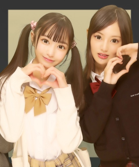 甘々なハートポーズでもシンプルで洗練された背景で撮ればおしゃれなプリの完成!目のサイズや肌の明るさも今とはちょっと違って平成っぽいかも?