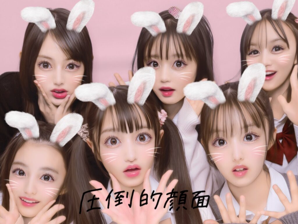 お目目をうるるん質感にしてくれる『Melulu』の加工にうさぎのなりきりスタンプをすれば、まさに圧倒的顔面!確実に盛れること間違いなし。
