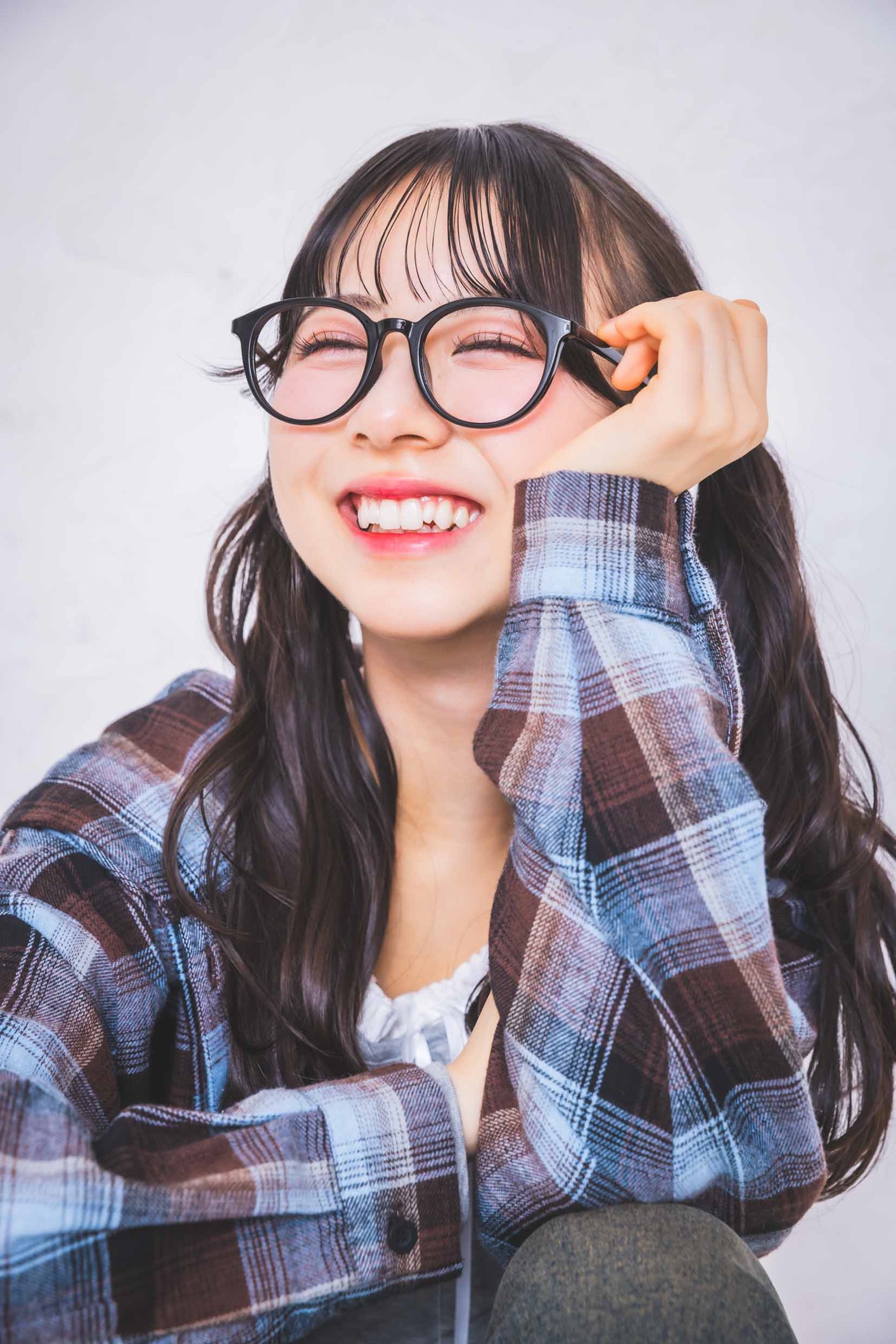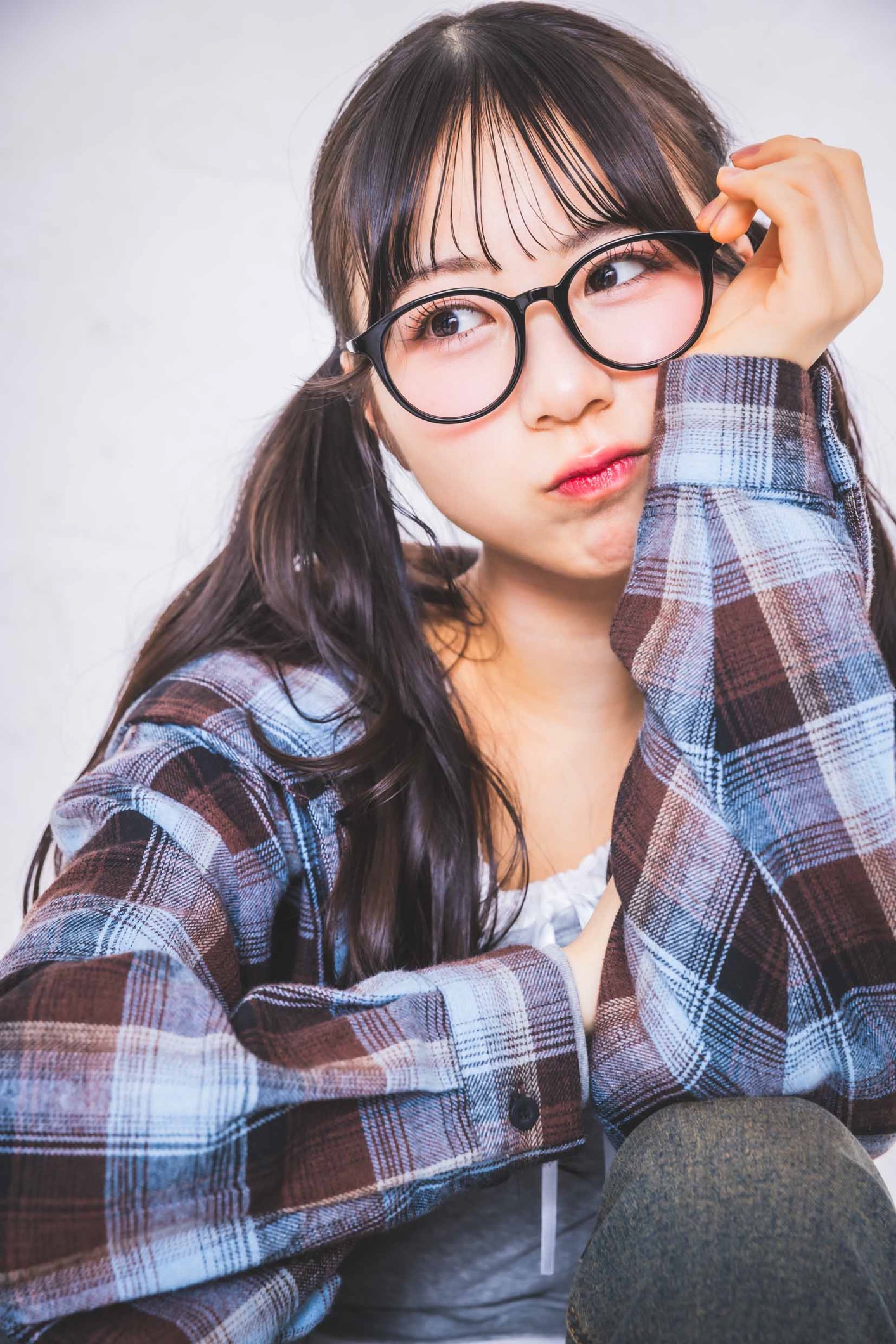 ユア☆パーカシャツ¥3289/SPINNS レイヤードトップス¥2969/PHILLY デニムパンツ¥3299/WEGO メガネ¥1320/ラティス