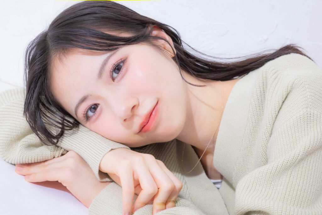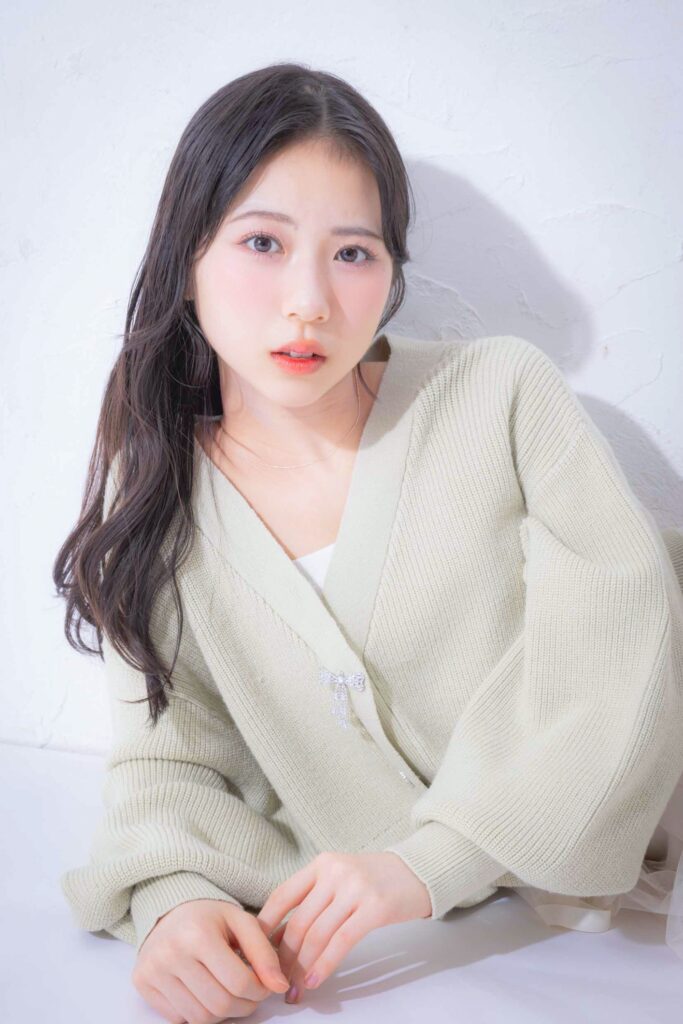 いつもぱっつんなユアだけど、思いきって前髪なしにもチャレンジ!ふわっとセンターで分けることで、年上のお姉さんビジュの完成♡