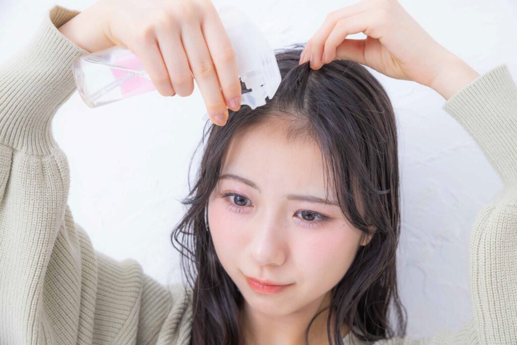 霧吹きなどで前髪の根元をしっかり濡らす!