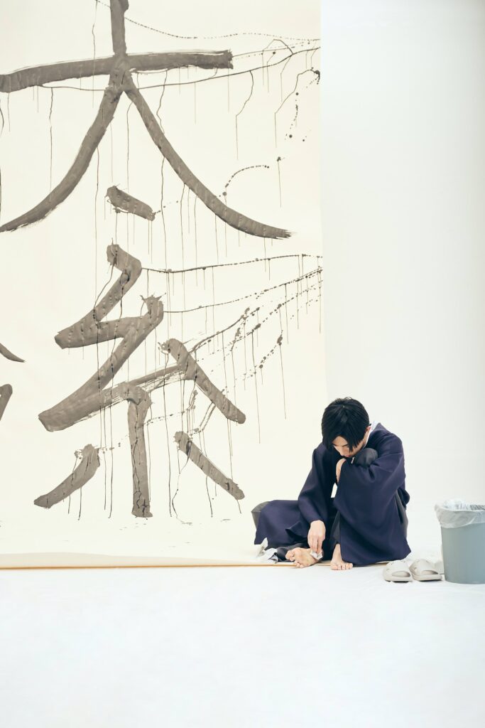 一生懸命書道をしたら、足の裏が墨だらけに!撮影終わりのリョウスケをキャッチ!