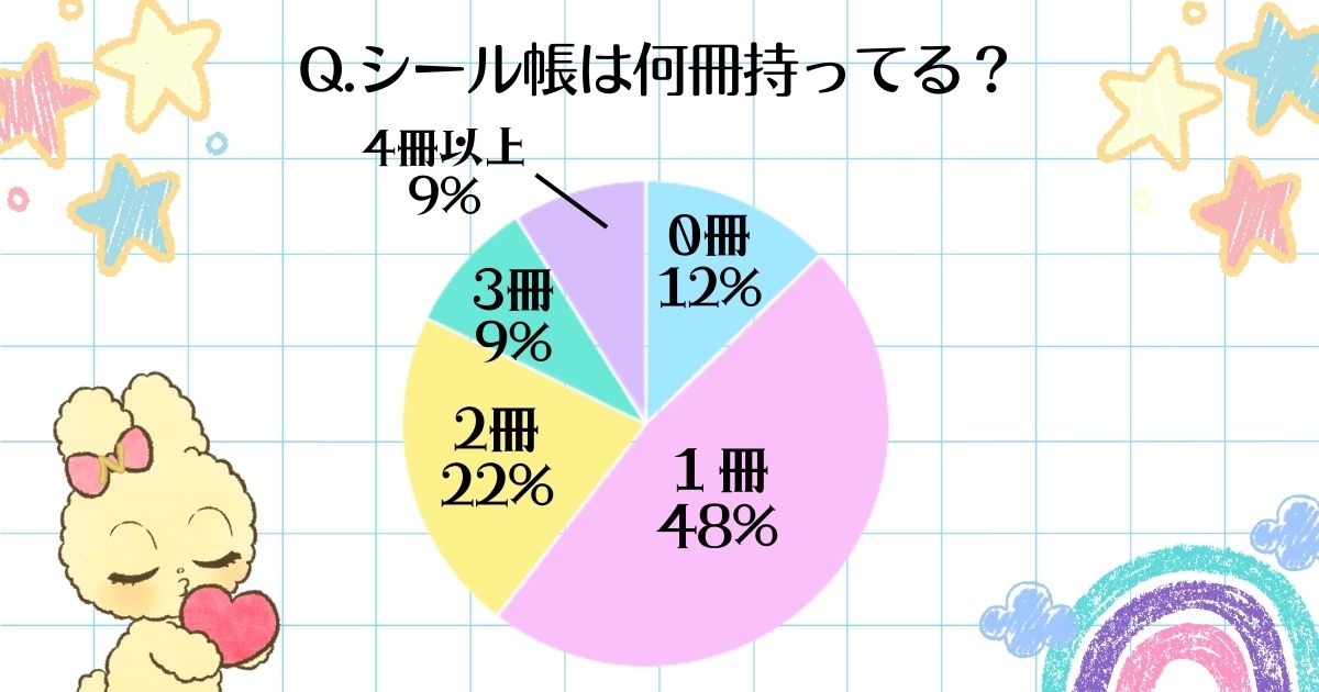 シール帳は1冊派がはぼ半数を占め、その他4割の子は2冊以上所持している様子。シール台紙のはがしやすさではるシールを決めたり、お気に入りだけを集めた1冊を作っているみたい。自分の”スキ”を集めたり、デコったり、とことんこだわれるのもシール帳の魅力♡