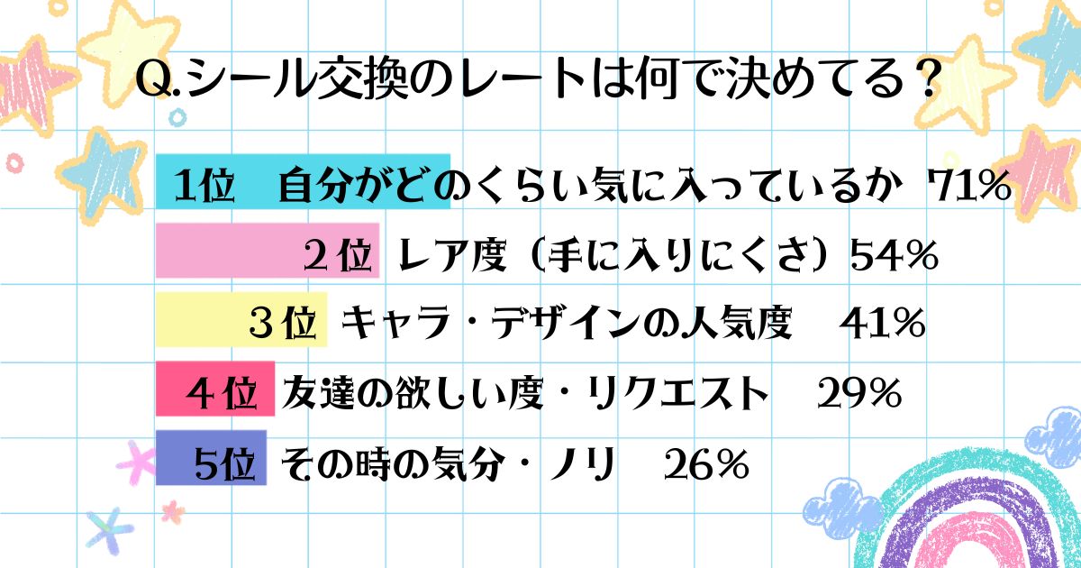友達同士でワイワイ盛り上がれる「シール交換」。中でも欠かせないのが、“レート(シールの価値)”の決め方!令和の中高生は、いったい何を基準にシールの価値を決めているのか、リアルな声をランキング形式にしてみたよ♡