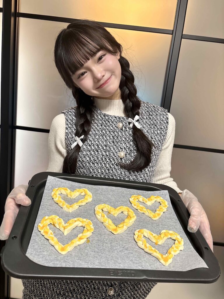 三つ編みを2つ繋ぎ合わせてハートを作ったら繋ぎ目はフォークでしっかりとめるよ♡.·*.
