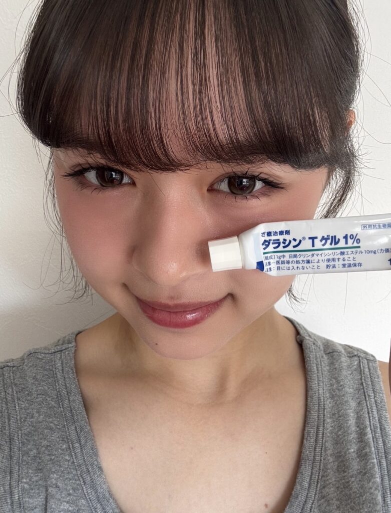 「私はニキビができたら薬局に行くんですけど、毎回処方してもらうのがこのローションで、肌が弱い子でも使いやすくて、副作用で荒れちゃうこともなかったので愛用してます!」