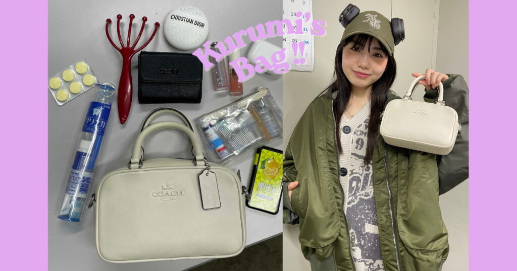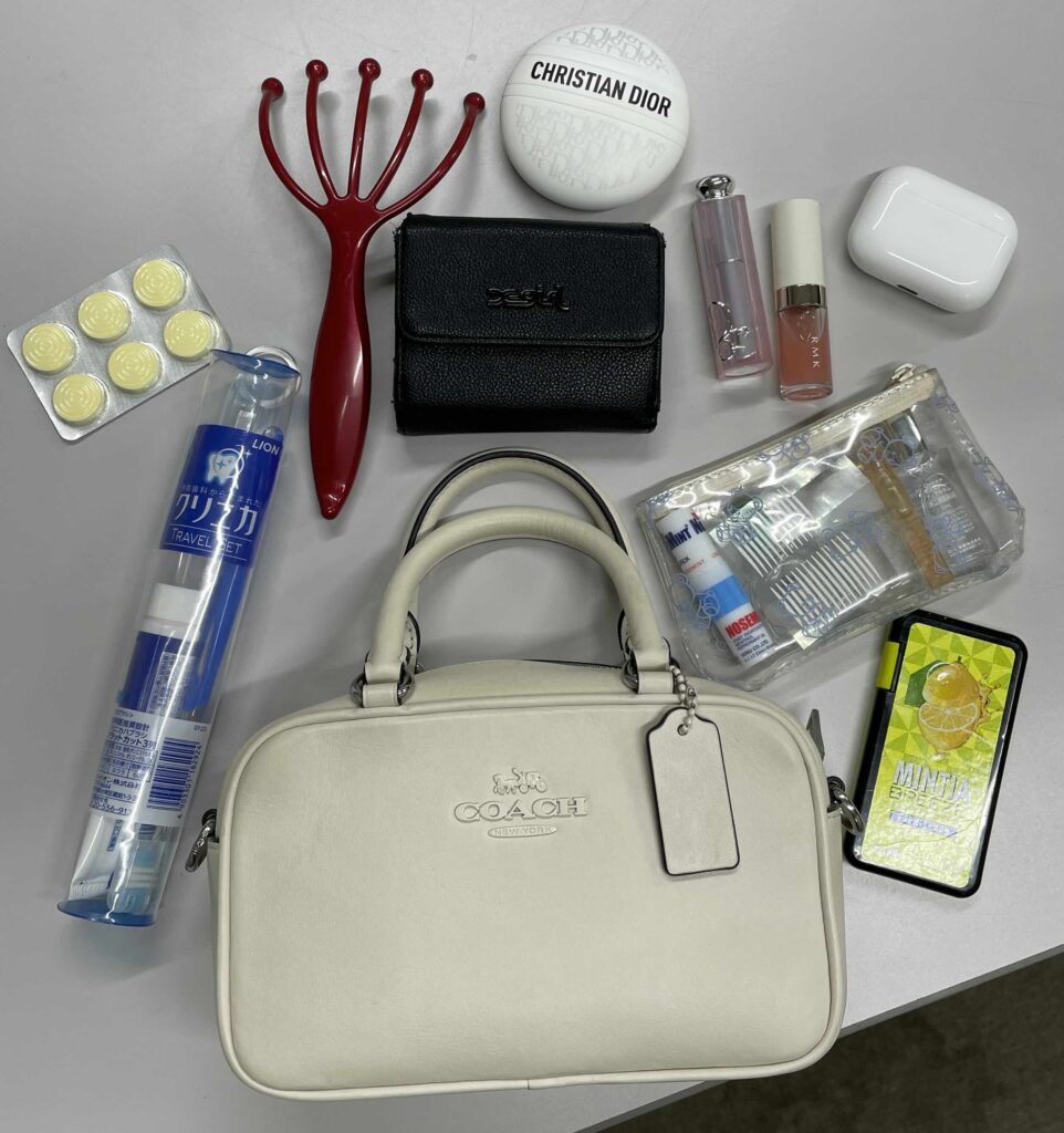 コンパクトなバッグの中から、「こんなに入ってたの?!」と思わずツッコミたくなるほど、次から次へと荷物が登場。数は少なめながらも、ところどころ気になるアイテムが……!