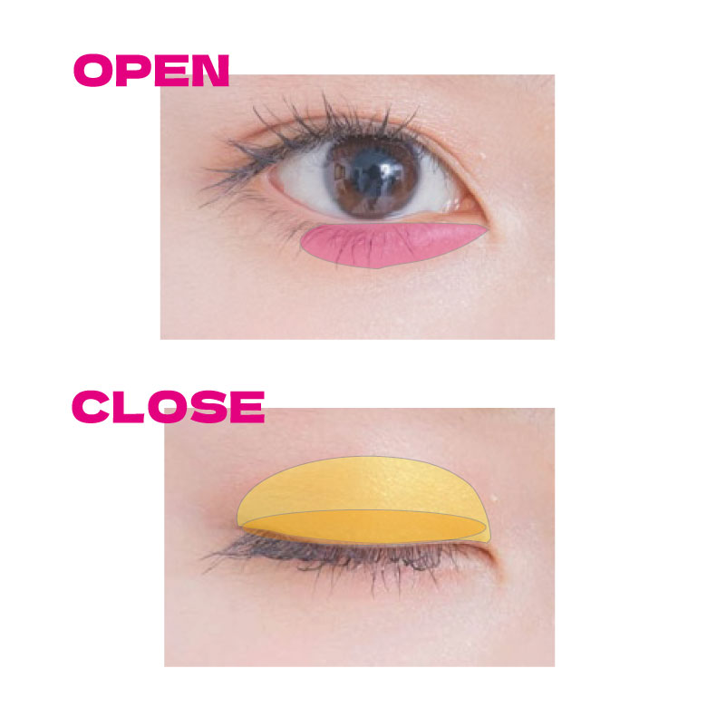 ②アイホールには、アイパレットの中央の一番明るい色をのせて全体にうすくのばして。