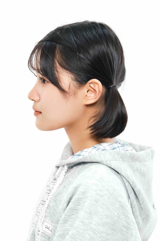 ①耳裏下でツインテールにする。イヤーマフと干渉しないように、細めゴムの方がよき!