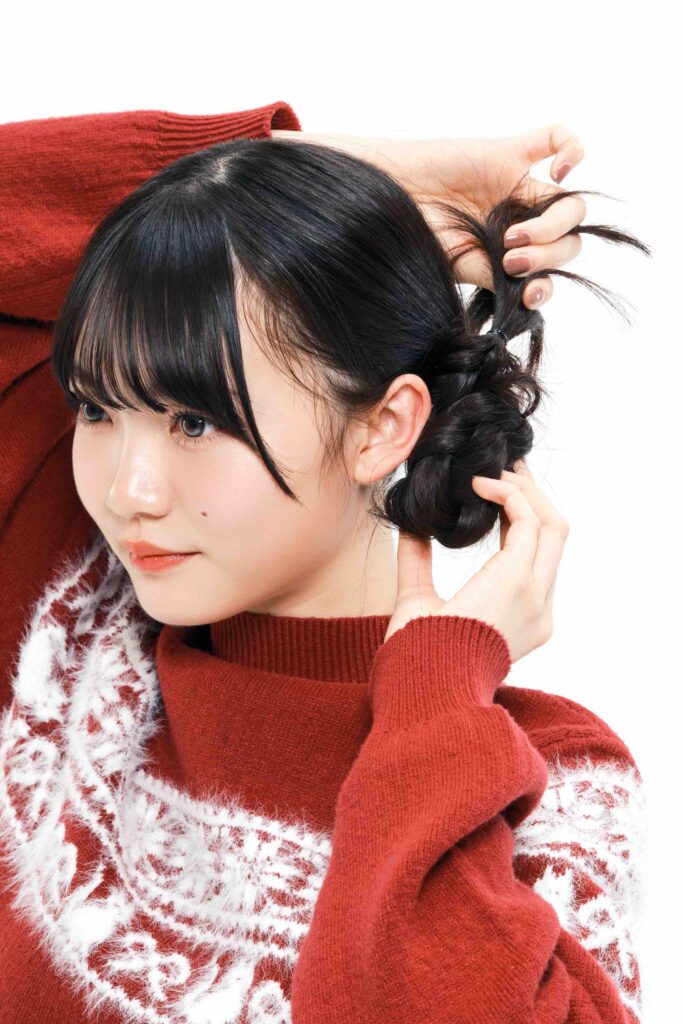 ①雑めにみつあみをする。あとで巻きつけたときにボリュームが出るから、あえて適当でOK!